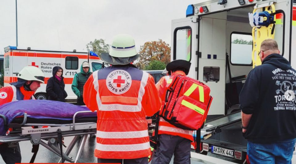 Rosenheim. Nach dem Eintreffen der ersten Kräfte konnte die angenommene Lage bestätigt werden. Der Einsatzleiter Alexander Grüneberg, stellvertretender Wehrführer in Rosenheim, ließ daraufhin weitere Kräfte alarmieren. Die bereits im sogenannten Teilalarm befindlichen Einheiten Kausen und Steinebach wurden nun im Vollalarm alarmiert. Vor Ort konnte Grüneberg, bei der ersten Erkundung bereits wichtige Details erfahren. Da es sich um einen sogenannten Massenanfall von Verletzten (ManV) handelte, wurden Kräfte des DRK, im Besonderen die Schnelle Einsatzgruppe Transport, alarmiert.